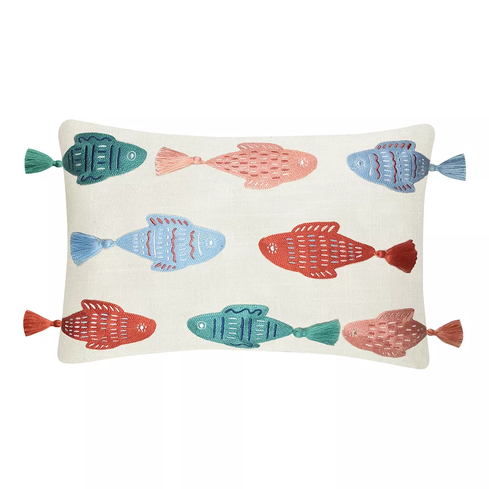 Add a colorful and fun accent to your living space with this Sonoma Goods For Life fish fringe pillow.