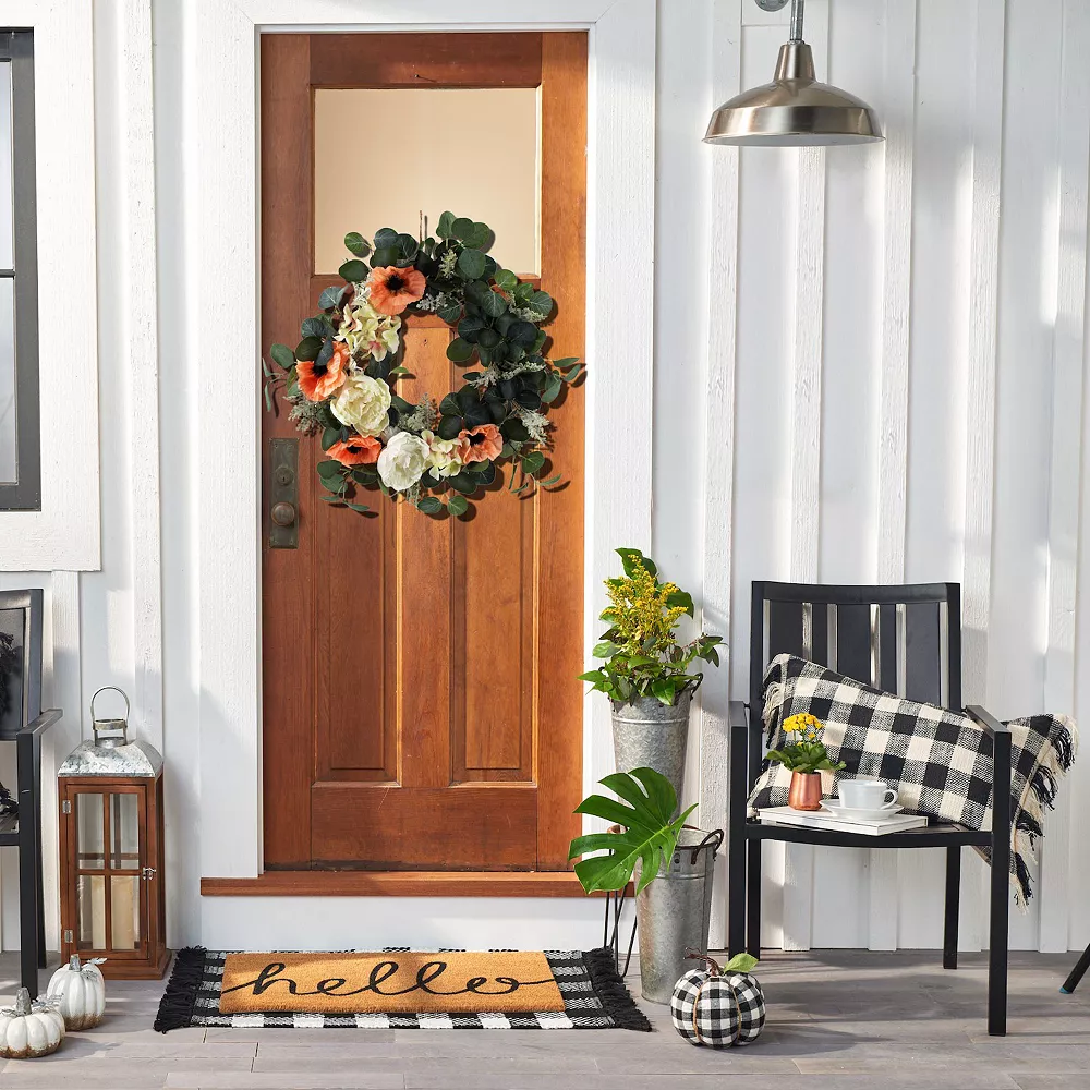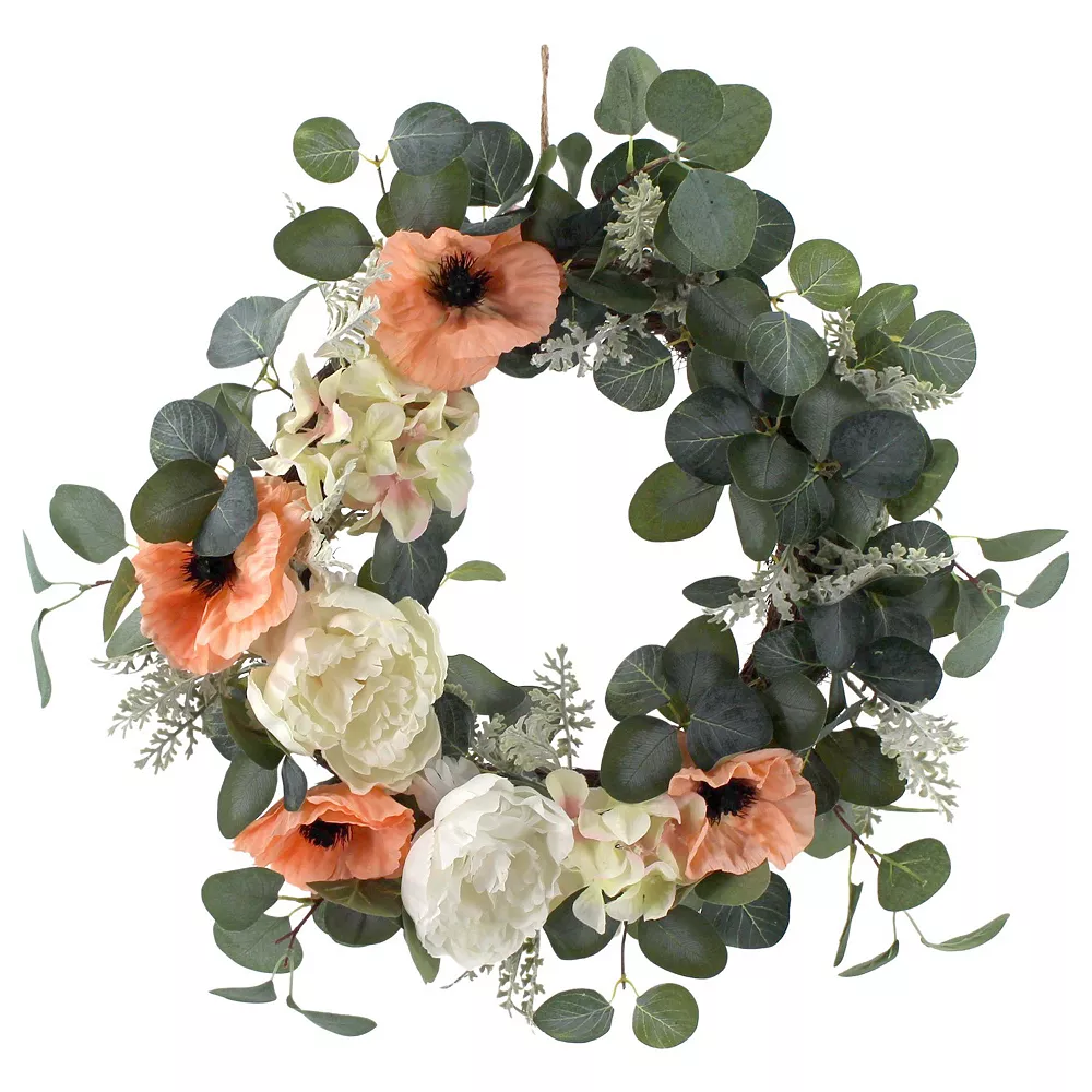 You’ll finish decorating your entryway in style with this Sonoma Goods For Life Artificial Eucalyptus Poppy Wreath.