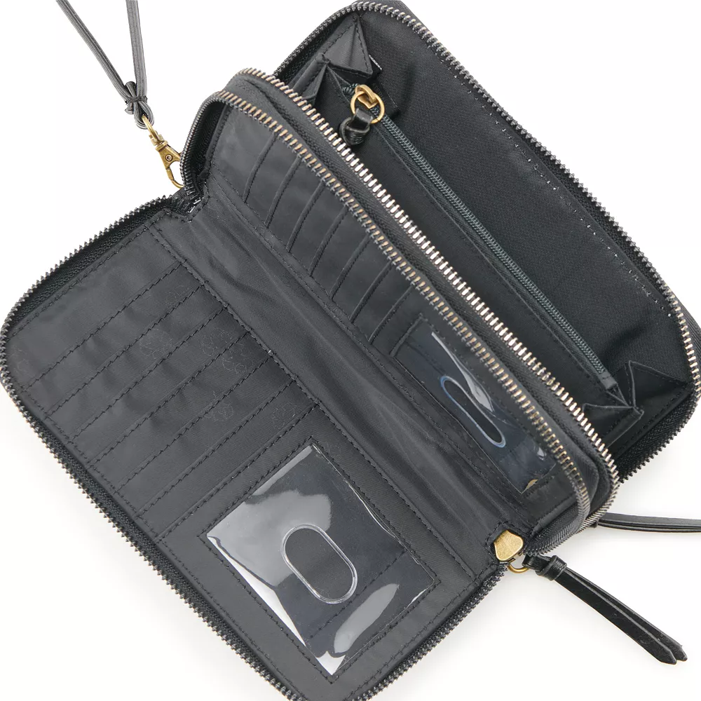 - Interior: 12 card slots, 2 ID windows, 1 zip pocket, 5 slip pockets