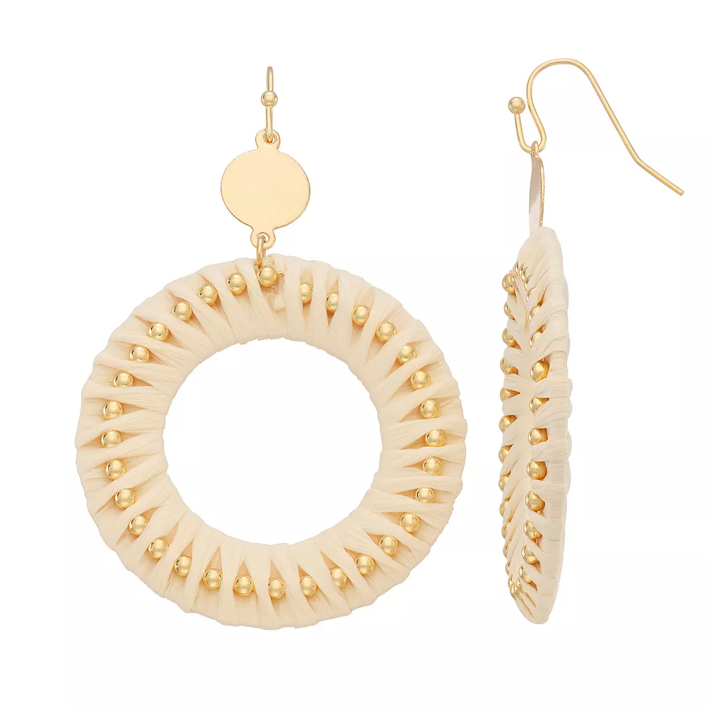 Add a touch of texture to any ensemble with these cotton and gold tone beads open circle drop earrings from Sonoma Goods For Life.