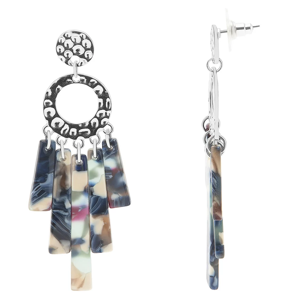 Make a statement with these Sonoma Goods For Life Silver Tone Hammered Post with Blue Acetate Shaky Stick Drop Earrings.
