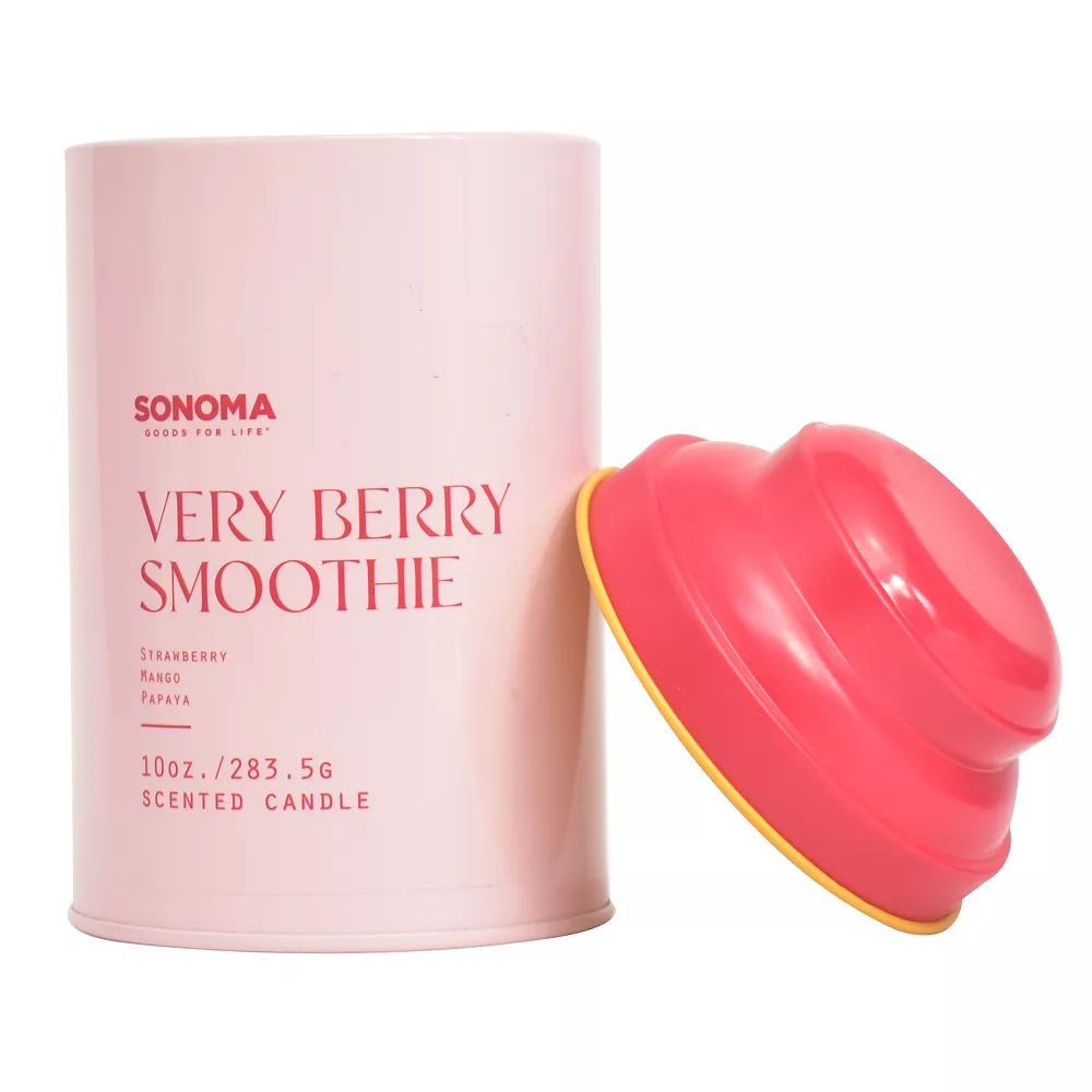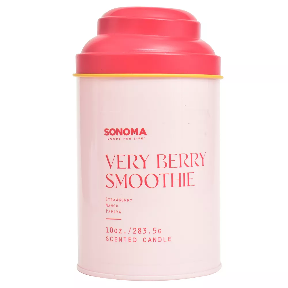 Breathe in a fruity summer scent with this Sonoma Goods For Life Tin Drink Collection Strawberry Mango 10-oz. candle jar.